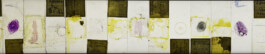 Detail of Friends of Friends (Six Degrees of Separation), 2013. Vintage collection of bacteria slides circa 1940s, steel, LED strips, car paint, and Plexiglas; 4 x 72 x 6 inches. Courtesy of the artist. Image courtesy of Bemis Center for Contemporary Arts; photo: Colin Conces.